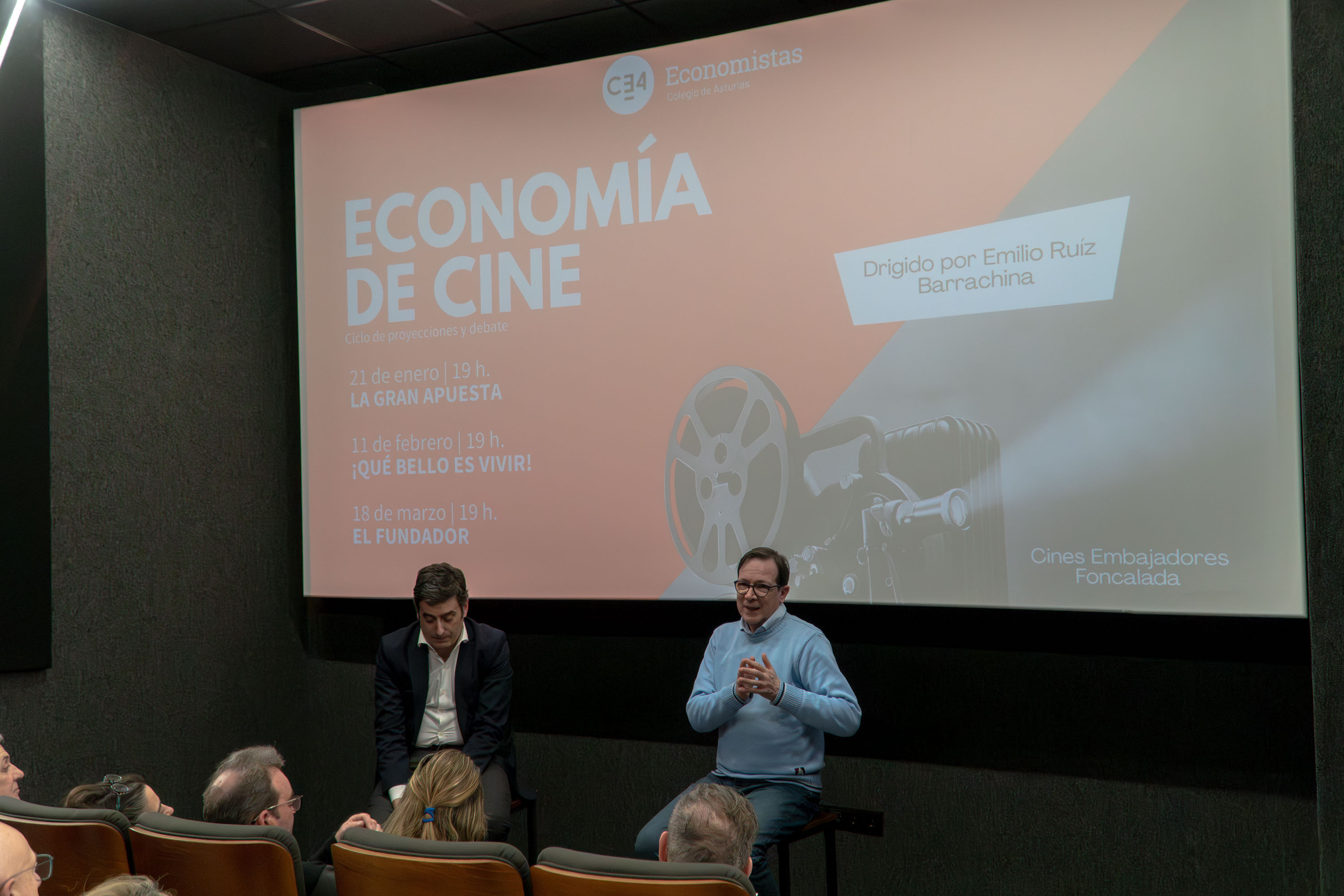 El Colegio Profesional de Economistas de Asturias inauguró el pasado 21 de enero el ciclo Economía de Cine con la proyección de la película “La gran apuesta”, en una primera sesión que registró aforo completo en el Cine Embajadores de Oviedo y que puso de manifiesto el interés del público por este nuevo formato que une cine, economía y reflexión social.